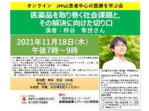 11月18日 秤谷隼世さん「薬」を起点とした、私たちの生き方を問いかける