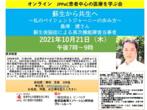 10月21日 島津渡さん 蘇生から共生へ~私のペイシェントジャーニーの歩み方~