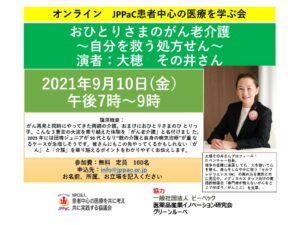 9月10日 大穂その井さん おひとりさまのがん老介護~自分を救う処方せん~